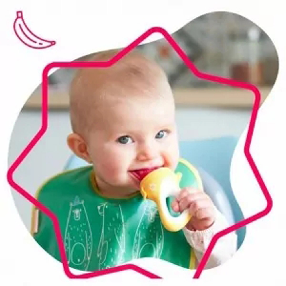 A legideálisabb módja a baba életkorának megfelelő szilárd ételek bevezetésére a fulladás veszélyének kizárásával. A hűtött gyümölcs a szilikon etetőhálóban a fájó íny megnyugtatására is szolgálhat. Használatával a kicsi megismerheti a természetes ízeket és állagokat. A baba nyálával felpuhítja az ételeket és kirágcsálja –akár még fogak nélkül is – a tartalmát. – Tehetsz bele a baba életkorának megfelelően nem csak zöldség- és gyümölcsdarabot, de húst vagy halat is, amit párolhatsz vagy megfőzhetsz előtte és akár melegen is adhatod a kicsinek. – Tej- és tojás mentes kifli vagy kenyérdarabot is tehetsz bele. – Hűtött, de nem fagyasztott gyümölcs vagy zöldség darabka alkalmas fogzási fájdalmak enyhítésére is. – Az etetőháló jól záródó kupakja biztosítja a higiéniát útközben is. – Biztonságos és kényelmes. – Minden használat előtt győződj meg a termék sértetlenségéről. Az etetőháló nem játszócumi, mindig felnőtt felügyelete mellett használd. Soha ne hagyd gyermeked felügyelet nélkül, ha a terméket használja. 4 hónapos kortól ajánlott.