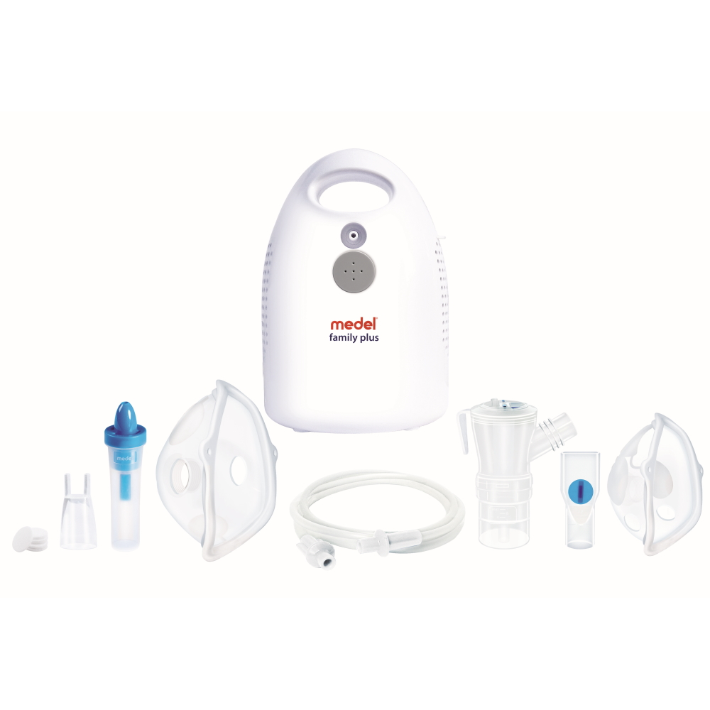A Medel Family Plus alsó és felső légutak párásítására, valamint a gyógyászati formák belélegzésére, inhalálására szolgál. Asztma, hörghurut, allergia és egyéb légzőrendszeri betegségek kiegészítő kezelésére használható. A Medel FAMILY PLUS egy dugattyús kompresszoros porlasztórendszer, nagyon csendes és könnyen használható, ideális otthoni használatra. Innovatív kétszelepes rendszerű Medeljet Plus porlasztóval érkezik, amely nagy hatékonyságot és minimális gyógyszerpazarlást biztosít. Használható ampullás sóoldattal és folyékony gyógyszerkészítményekkel. Ez a Medel inhalátor könnyen tisztítható kiegészítők teljes skálájával van felszerelve a maximális kényelem érdekében a kezelés során. Minden tartozék a csomagban található Medel táskában tárolható. A Medeljet Plus porlasztó innovatív légzéssel nyíló szeleppel rendelkezik, amely maximális kezelési sebességet és nagy hatékonyságot biztosít, minimalizálja a gyógyszerpazarlást. Két funkció közül lehet választani: „A” mód: A terápia maximális hatékonysága és minimális gyógyszerpazarlás (csak fordítsa el a szelepet A módba a záráshoz) „B” mód: Maximális fordulatszám (csak fordítsa a szelepet B módba a nyitáshoz) „A” mód: Légzés által fokozó rendszer aktiválódik: A finom aeroszolködöt (1-essel jelölve a képen) a sűrített levegő (3) állítja elő. A (2) belégzési szelepet a páciens belégzése (PIC.1) nyitja meg, ami lehetővé teszi a további levegő (5) beszívását; ennek eredményeként megnő a porlasztási teljesítmény. A (4) kilégzési szelepet a páciens kilégzése nyitja meg (PIC.2); ennek eredményeként a gyógyszerpazarlás és a gyógyszerszennyeződés minimálisra csökken. Műszaki jellemzők: Átfolyás: 5,1 l/perc Aeroszol kibocsátás: 0,25 ml Aeroszol kimeneti sebesség: 0,089 ml/perc Porlasztási teljesítmény: 0,37 ml/perc Előállított részecskeméret (MMAD): 3,50 μm Finom részecskefrakció (FPF): 92,60% Maximális kompresszornyomás: 2,2 bar Zajszint: 52 dBA Minimális töltési mennyiség: 2 ml Maximális töltési mennyiség: 8 ml Üzemmód: 30 perc. be / 30 perc. ki Súly: 1,5 kg Mérete: 18,8 x Ø13,6 cm Tartalom: A csomag a készüléken kívül 5 db légszűrőt, orr csatlakozót, Medeljet Plus porlasztót, puha profilú felnőtt- és gyermekmaszkokat, szájcsutorát, levegőcsövet, orröblítőt és tárolózsákot is tartalmaz.