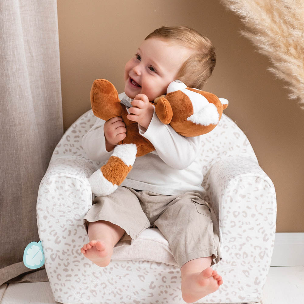 Puha plüss játék, amely nagyszerû elsõ társa lehet a babának.Kedves játszótárs és nyugtató játék szükség esetén.Ideális a finom motoros készségek fejlesztéséhez számos megfogási lehetõséggel.Gyönyörû bújós játék poliészterbõl és pamutból, kellemes tapintású és serkenti a tapintást.Ez a puha társ tökéletes az ölelkezéshez és a felfedezéshez, így ideális kiegészítõje a baba játékainak.Mérete: kb. 30cmAnyaga: 100% poliészter