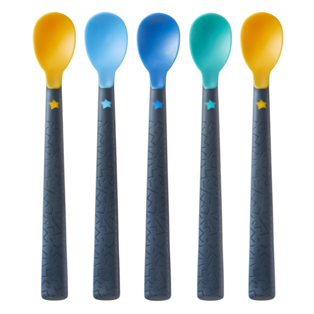 Tommee Tippee Softee etetőkanál 5db Az 5 darabos, divatos színű etetőkanalak közül a kisfiúk és kislányok is megtalálják a kedvencüket. Kifejezetten az első igazi szilárd falatokhoz tervezve. A puha, rugalmas, lapos fej gyengéd a kis szájacskákhoz és az érzékeny ínyekhez, így nem okoznak kellemetlenséget, miközben a finom falatok célba érnek. A hosszú nyél segítségével könnyen elérjük a bébiételes üveg vagy bármely edény alját. Csúszásgátlóval ellátott kialakításának köszönhetően nem csúszik bele a tálkába. A higiéniai szempontokat figyelembe véve a kanál nyele megemelt kialakítású, így a kanál feje és az étel nem ér hozzá a felületekhez. Termék jellemzők: • 5 db van a csomagban • Puha, lapos fej az érzékeny ínyekhez • Hosszú nyél a mélyebb üvegekhez, edényekhez • Csúszásgátlós kialakítás, nem csúszik bele az edénybe • Megemelt nyél, távol tartva a kanálvégződést és az ételt a felületektől • Mosogatógépbe, mikrohullámú sütőbe, sterilizálóba betehető • 4 hónapos kortól ajánlott • BPA, BPS, PVC és ftalát mentes - Fontos! A termék egészségvédelmi és higiéniai terméknek minősül. Amennyiben a csomagolás felbontásra került, vagy a kipróbálás jelei látszódnak a terméken, úgy a 14 napos elállási jog érvényét veszíti a 45/2014. (II. 26.) korm. rendelet 29. § (1) bekezdése alapján.