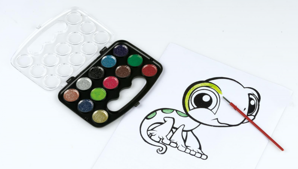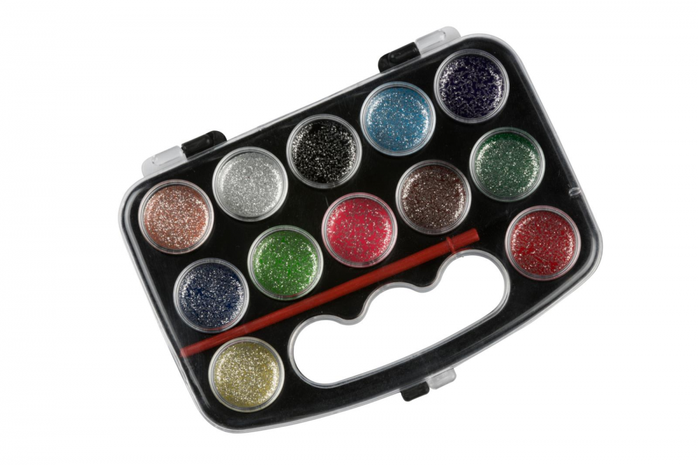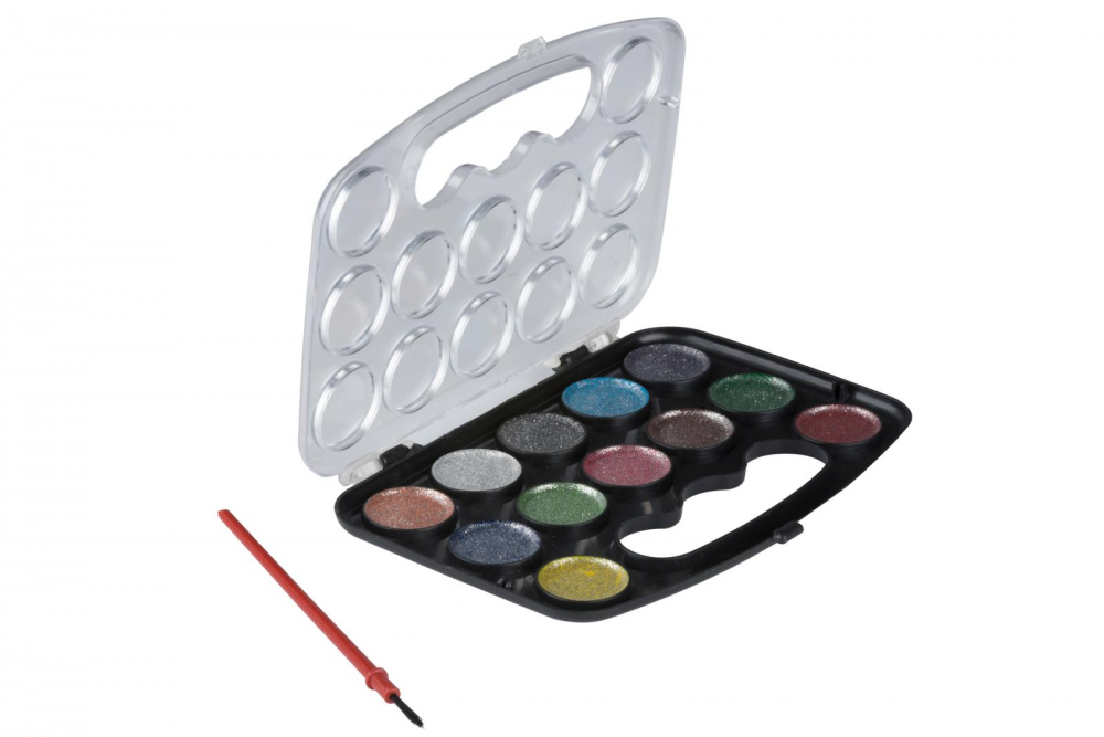 Vízfesték csillámporos, 12 szín, palettán + ecset